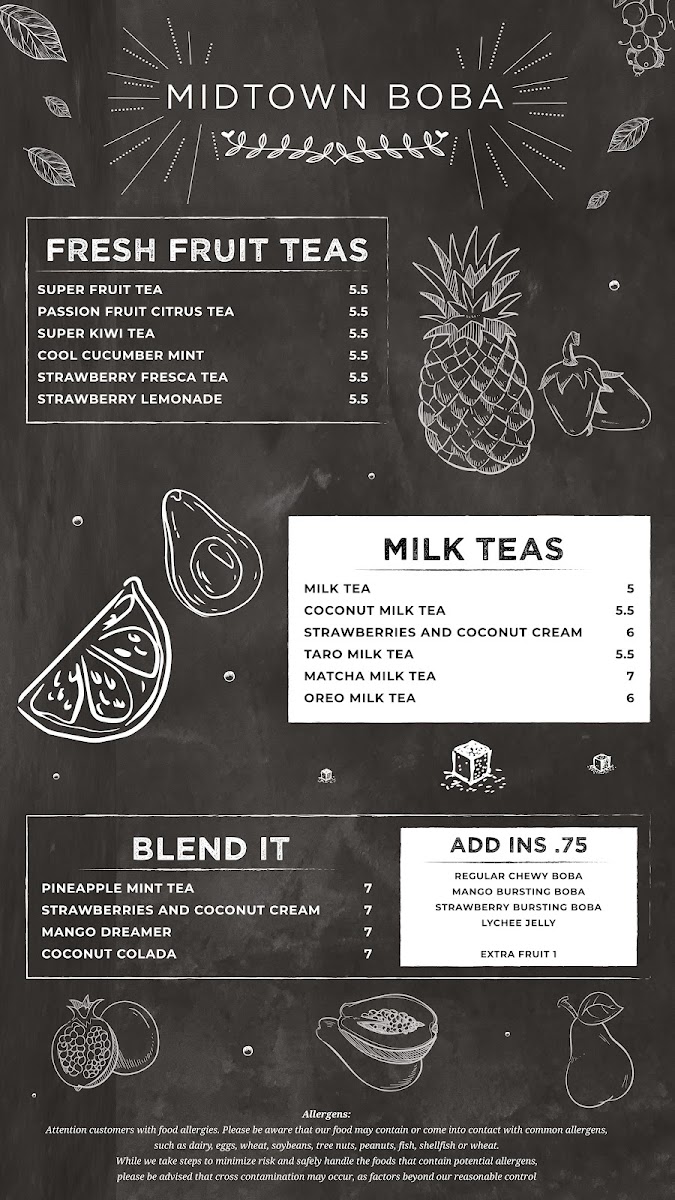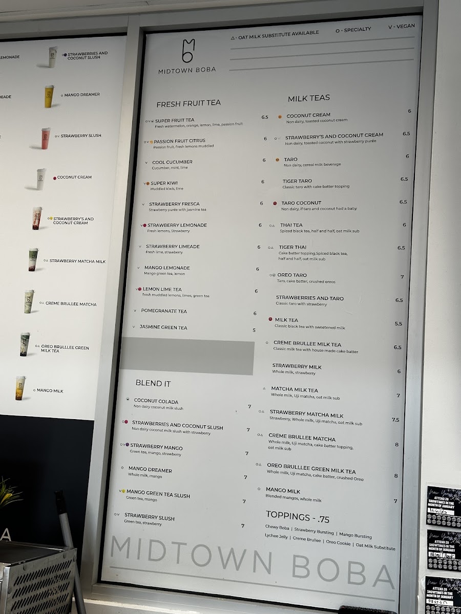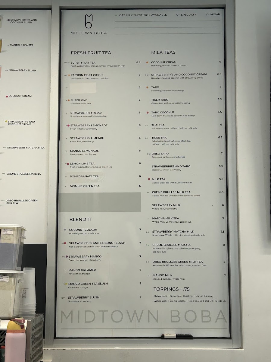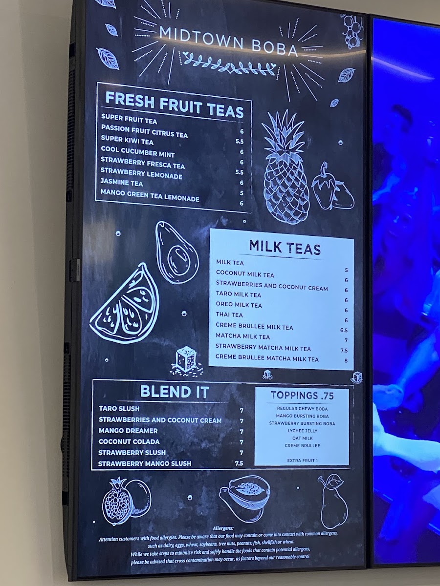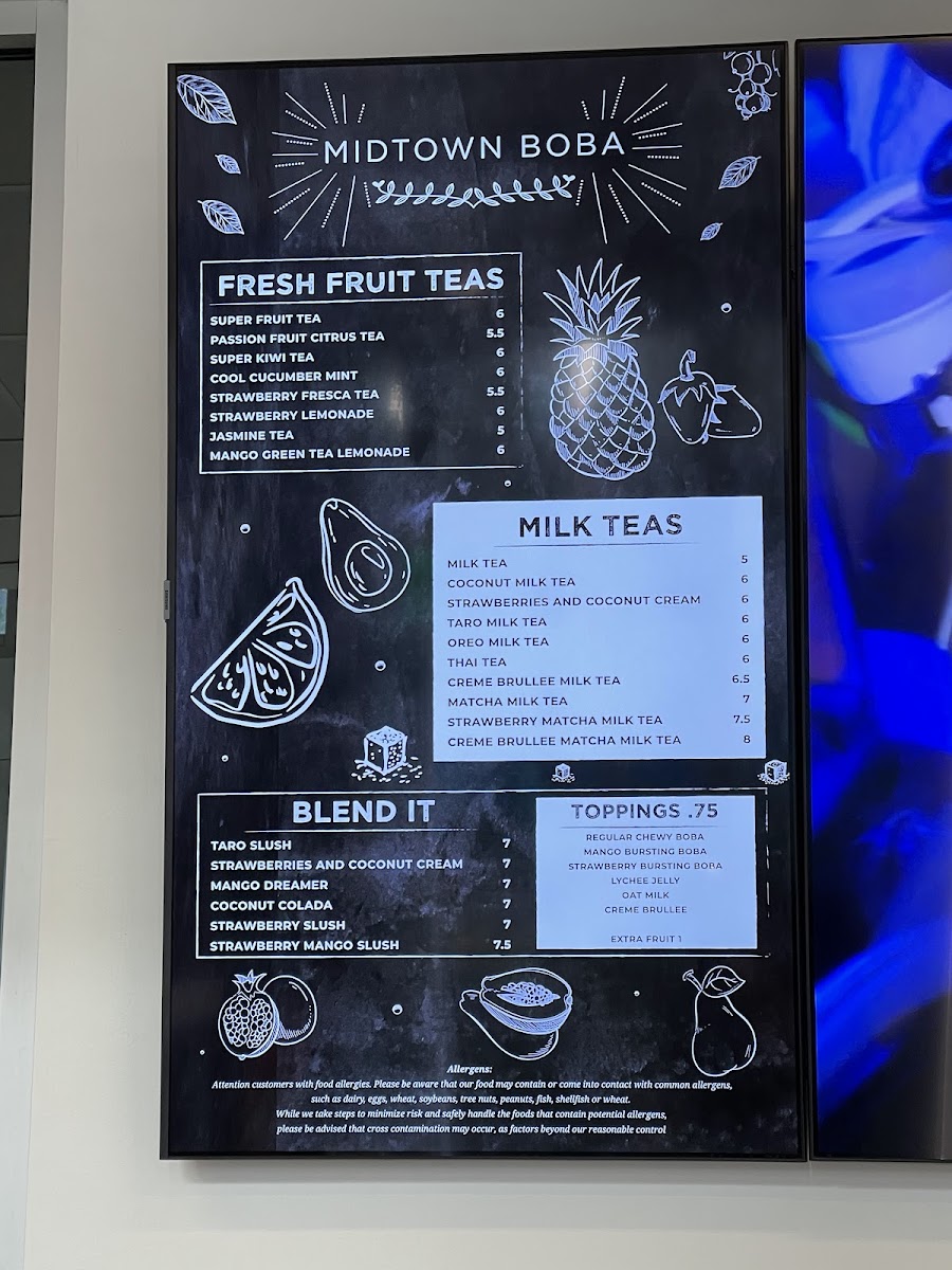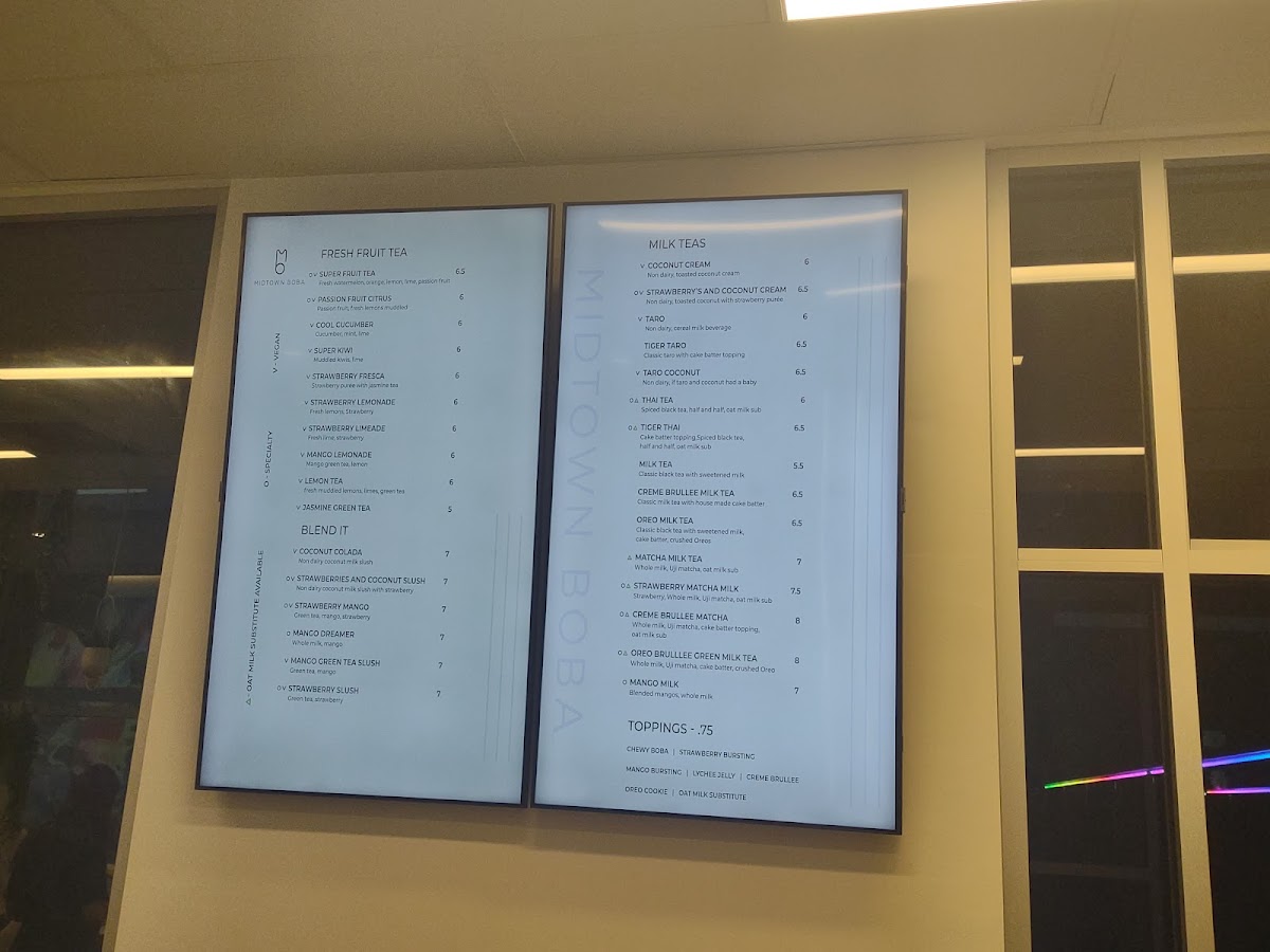Midtown Boba Menu